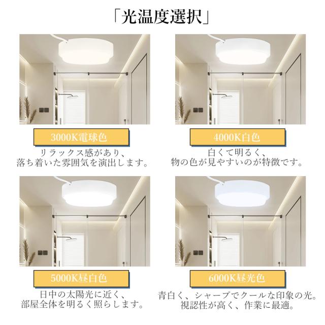 - 電球色・白色・昼白色・昼光色の4つの色温度に対応。お好みや時間帯に合わせて最適な明かりが楽しめます。
