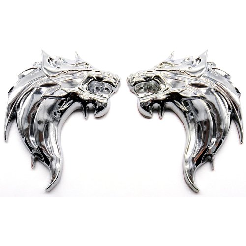 3D 立体 ステッカー ウルフ 狼 オオカミ エンブレム 金属製 左 右 簡単 貼り付け 両面 テープ 付き シルバー左右