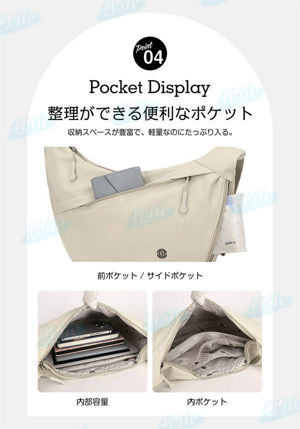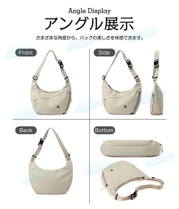 ナイロンクロスボディバッグには、大きなフロントジッパーポケット1つ、小さなジッパーポケット1つ、バッグ内部には仕切りとポケットが付いており、広々としたメインジッパーポケット1つ。タブレット、ラップトップ、傘、携帯電話、化粧品などの必需品をたっぷり収納できます