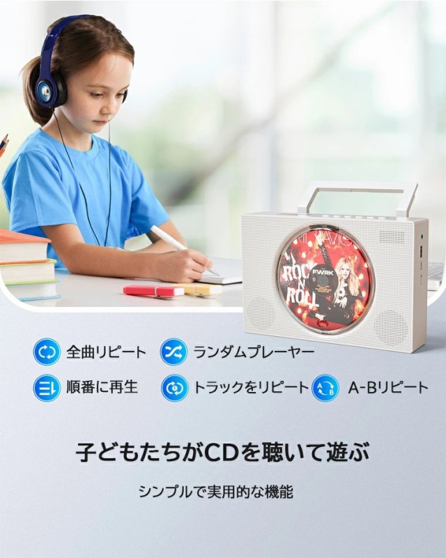 本CDプレーヤーは、立体的なミュージックが再生可能なHi-Fi高音質スピーカーを内蔵しており、低音や高音でも音が割れなく日常生活に大活躍です。更に、3.5mmイヤホンジャックも付いて、別売りの3.5mmイヤホンでプライベートな曲が楽しめます。ご注意:1、イヤホンをプレーヤーに接続する前に必ず音量を下げてください。2、イヤホンの接続の状態でスピーカーがOFFになります。
