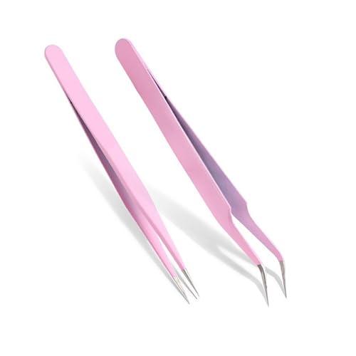 LIANHATA 2種類セット ピンセット 精密 キャップ付き ステンレス 先曲がり ストレート 細かい毛髪やまつげ つけまつ毛 クラフトに最適 (