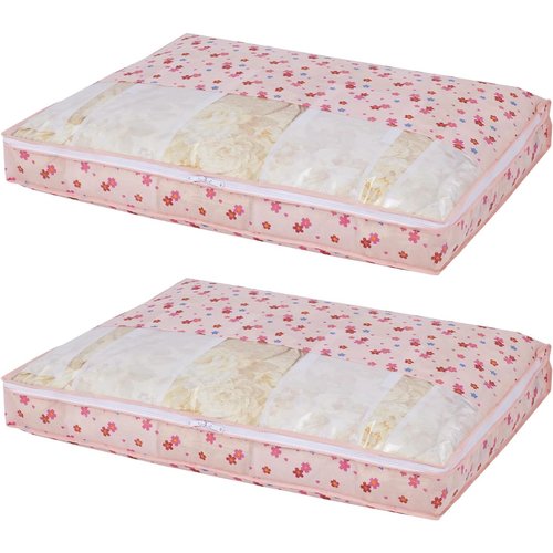 【商品仕様】:サイズ/約幅88×奥行65×高さ10cm、カラー/ピンク、柄/さくら柄、内容/2個、収納目安(1個あたり)/シングルサイズの羽毛布団1枚、材質/ポリプロピレン(抗菌剤練り込み)・ポリエチレン