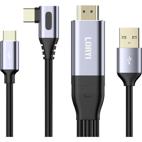 HDMI to USB C 変換ケーブル 4K60Hz 2.5m L字 USB-C給電 L字 AR グラス HDMI 変換アダプター HDMI 2.0 USB-C給電 HDMIからUSB-Cへ変換アダプター モバイルモニター USB-A タッチ機能サポート 変換ケーブル Thunderbolt 3対応 AR メガネ 変換アダプター Switch 、XBOX 、Steam deck ゲーム機