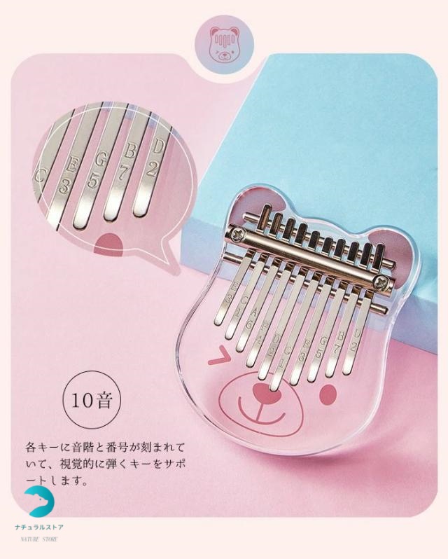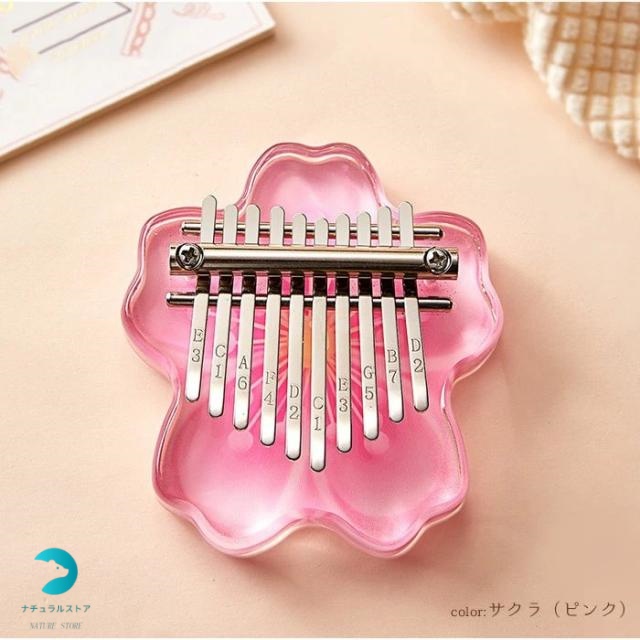 カリンバ 親指ピアノ 楽器 初心者 セット 10キー ミニサイズ さくら 軽量 サムピアノ かわいい 10音 プレゼント