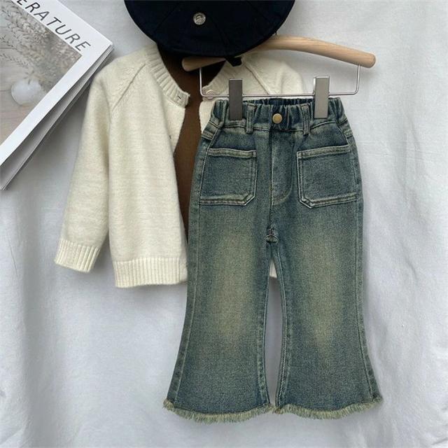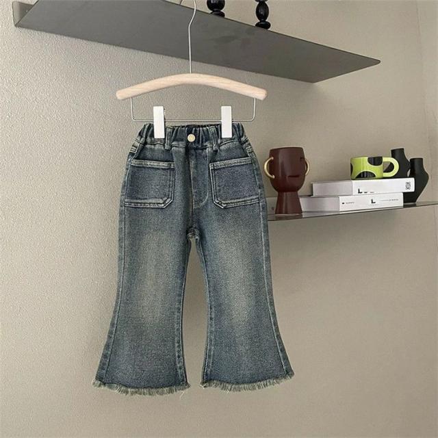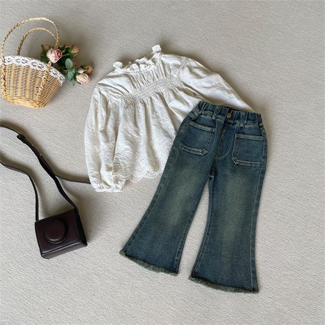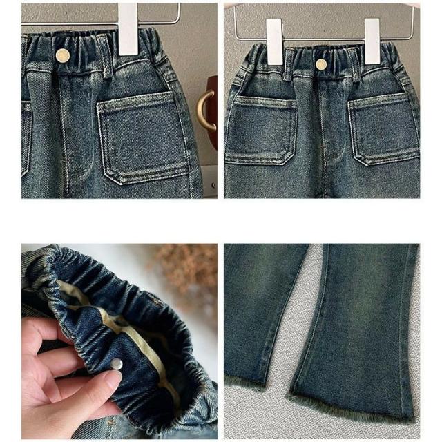 デニム ワイドパンツ 子供服 キッズ 女の子 ボトムス ロングパンツ デニムパンツ 長ズボン ストレートパンツ ジュニア 韓国 春秋 90-140 ユニセックス