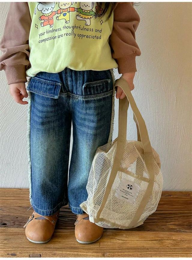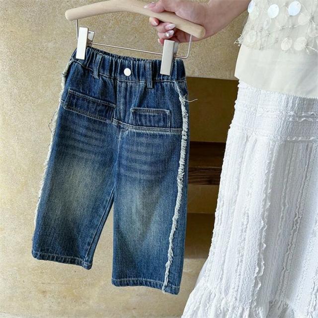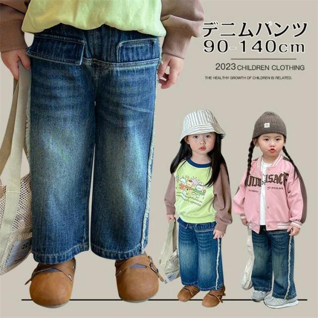 デニム ワイドパンツ 子供服 キッズ 女の子 ボトムス ロングパンツ デニムパンツ 長ズボン ストレートパンツ ジュニア 韓国 春秋 90-140 ユニセックス