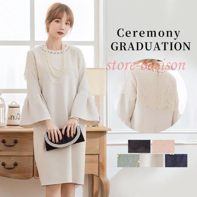 卒業式 服 母 服装 ワンピーススーツ セレモニースーツ レース スピーカースリーブ 卒園式 ママ 入学式 レディース 母親 40代 50代 30代 OL 通勤 面接