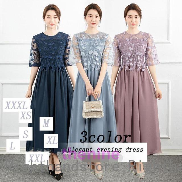 パーティードレス 大きいサイズ 結婚式 服装 七分袖 レース ワンピース 二次会 お呼ばれ 発表会 フォーマル20代 30代 40代 50代