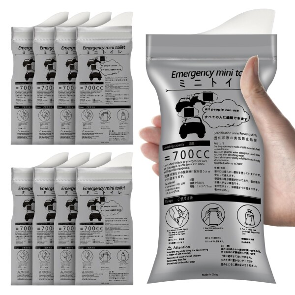 【セット内容】簡易トイレ8個。携帯トイレの容量は約700ccあり。(パッケージに日本語の説明書が付属)