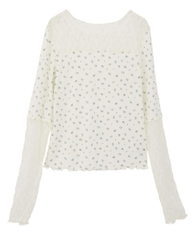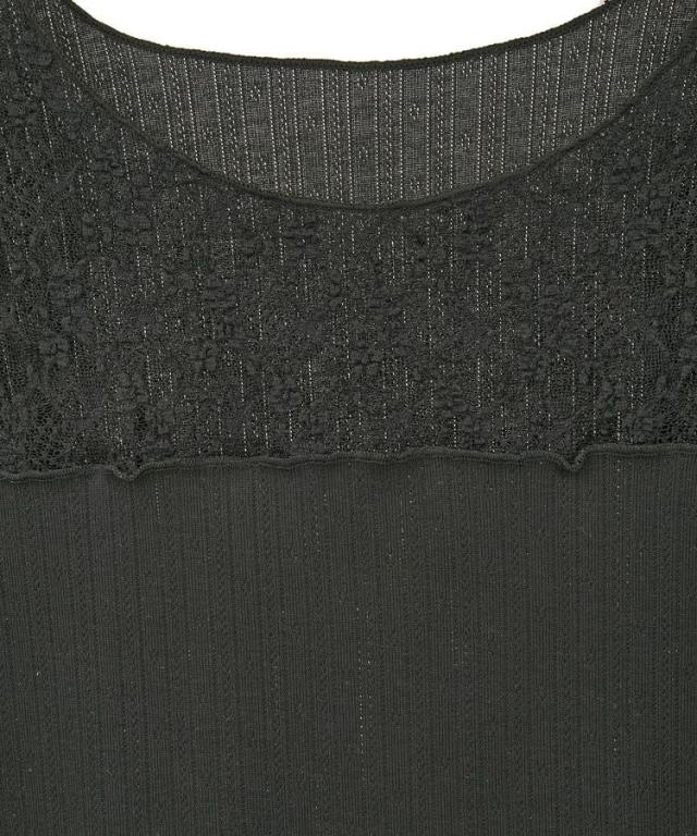 ワンピースやシャツのインナーにも活躍するデザインプルオーバー。フェミニンなアイレット生地に上品なレースを大胆に切り替えたデザインが特徴です。伸び良く程よいフィット感で着心地も快適。ベーシックな白と黒に加え、小花柄で甘さをプラスした3色展開にも注目です。透け感[ややあり]