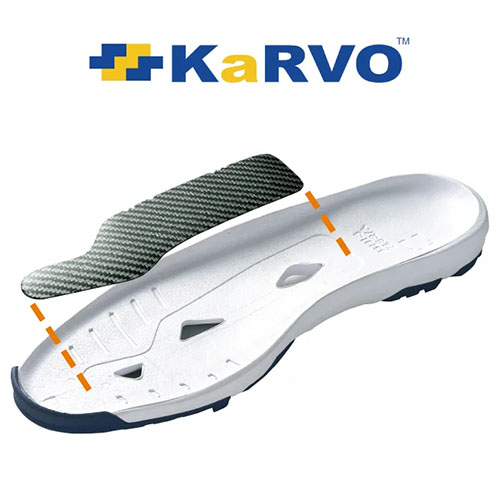 超軽量で反発・屈曲性に優れた素材KaRVO(カルヴォ)をミッドソールに内蔵。スイングやラウンド中の歩行をサポートする。