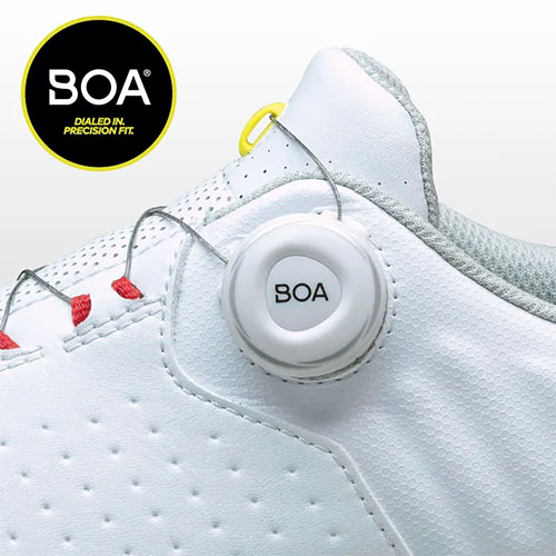 BOAフィットシステムは、最も過酷な状況下でもパフォーマンスを発揮するよう設計された微調節可能な精密フィットを提供します。(BOAはBOA TECHNOLOGY社の登録商標です)