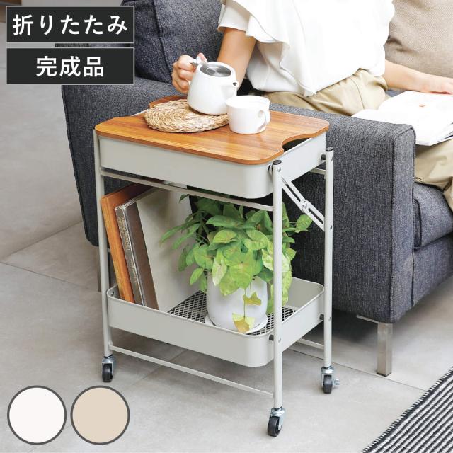 ●ほぼ組み立ていらずな折りたたみ2段ワゴンです。