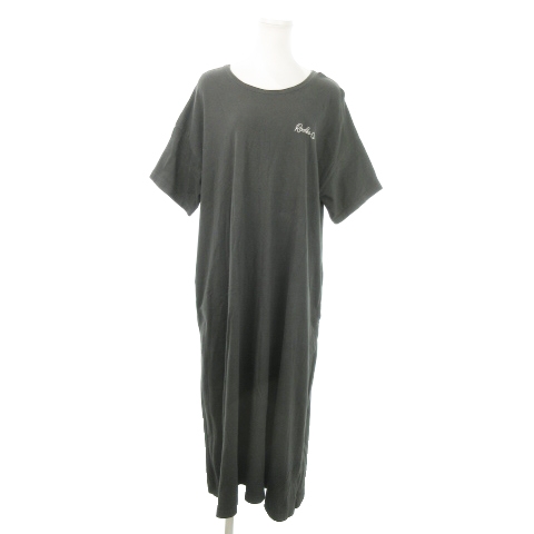 【中古】ロデオクラウンズ Rodeo Crowns マキシワンピース ロング 半袖 切替 レオパード ヒョウ柄 ロゴ F グレー