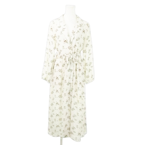 【中古】アーバンリサーチ items シャツワンピース ロング 開襟 オープンカラー 長袖 リボン 花柄 F ベージュ