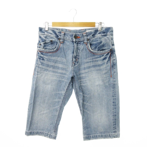 【中古】エドウィン EDWIN XU-S デニムパンツ ジーンズ ハーフ ショート ダメージ加工 ウォッシュ加工 32 青 ブルー