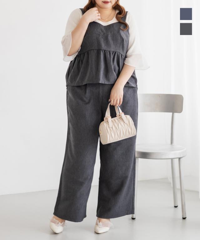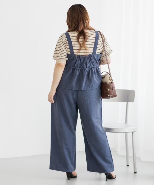 大きいサイズ/レディース/3L/4L/デニムライクビスチェ&パンツセットアップ