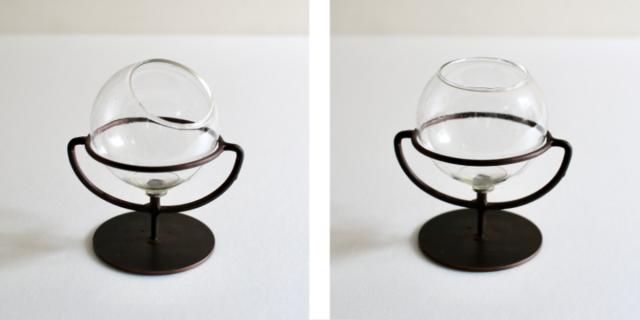 アイアン支柱の吸盤でガラスカップを固定し、自由に角度調整ができます。お好みの見せ方でディスプレイが可能です。