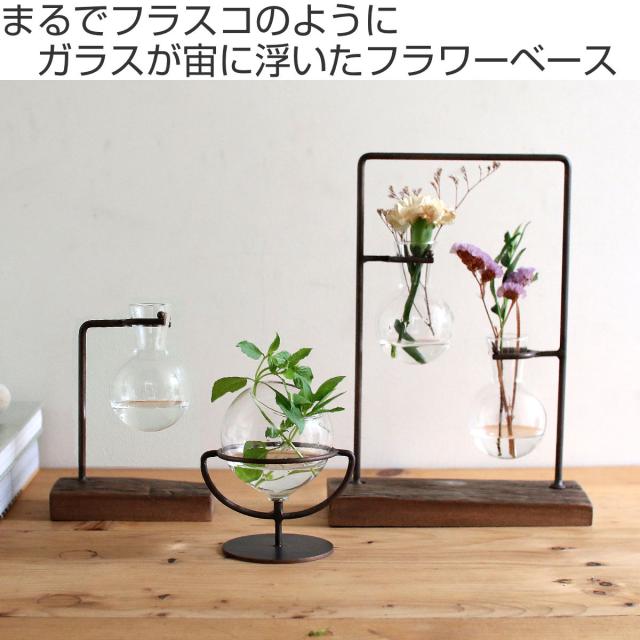 まるで実験のフラスコのように、ガラスが宙に浮いたデザインのフラワーベースです。インテリアにさりげないアクセントをくわえ、シンプルながらも洗練された空間を演出します。ガラス部分はお花を一輪挿すだけで雰囲気が変わり、ドライフラワーやグリーンとの相性も抜群です。
