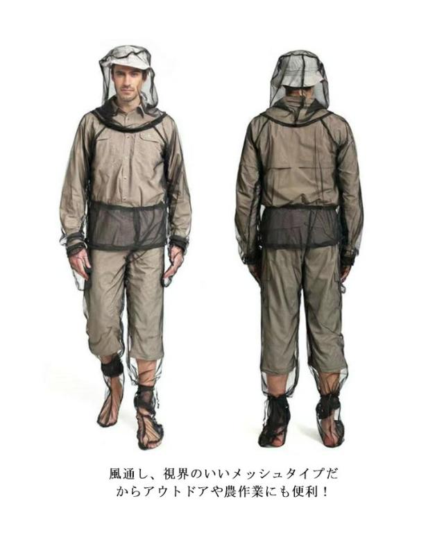 【4点セット】 顔まですっぽり 虫除けウェア 虫よけウェア 虫よけネット 防虫ネット 蚊よけ メッシュ 虫除け ウェア パーカー ズボン 足カバー 手袋 防虫 畑用 採集 釣り 軽量 耐久性 速乾性 通気性 農作業