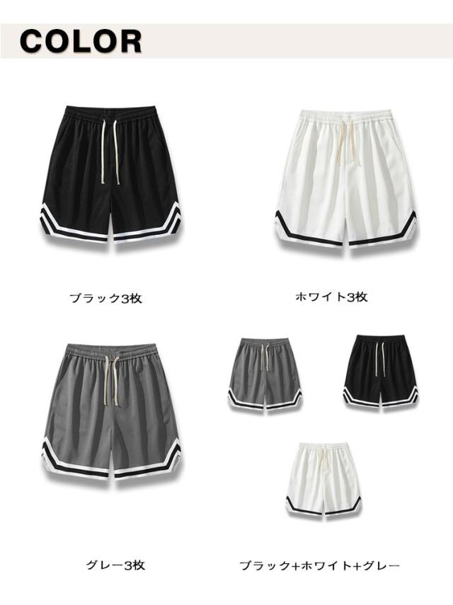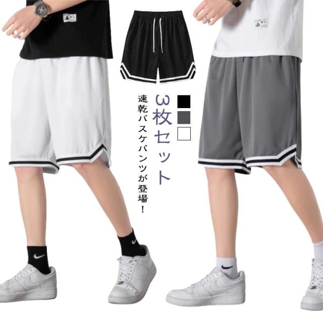 【3枚セット】 ショートパンツ バスケパンツ メンズ ハーフパンツ 無地 スポーツ 短パン 速乾 バスケットパンツ 男性 運動着 大きいサイズ 半ズボン ウエストゴム 夏 吸汗速乾 通気性 ランニングパンツ 運動会 体育祭 部屋着 父の日 送料無料