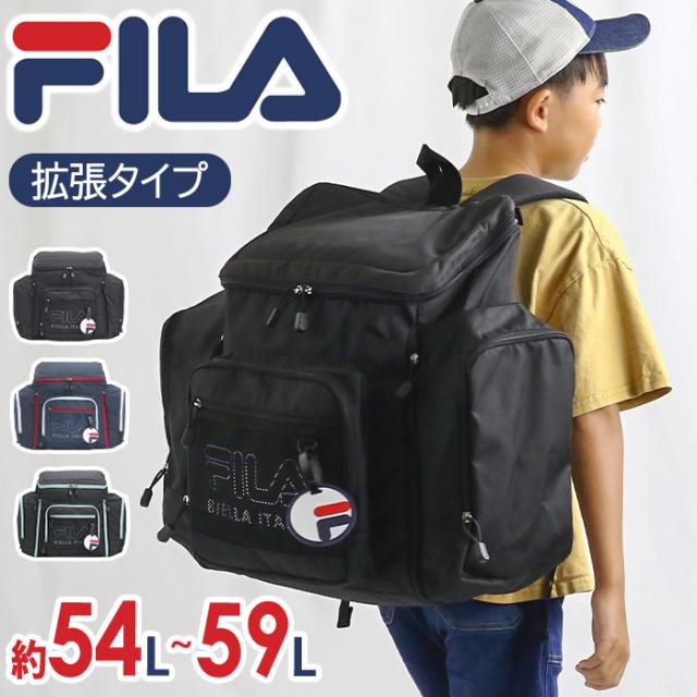 FILA フィラ キッズ リュック 自然学舎 林間学校 大容量 サブリュック リュックサック 子ども ジュニア 男の子 女の子 黒 大型バッグ B4 54L 59L 小学校 高学年 キャンプ 旅行 合宿 宿泊行事 修学旅行 防災 アウトドア サマーキャンプ 7701