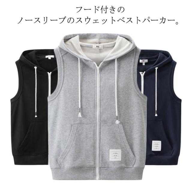ベスト 前開き 重ね着 ノースリーブ 前開きベスト おしゃれ メンズ ジレ トップス ジップアップパーカー ノースリーブパーカー パーカーベスト スウェット 大きいサイズ パーカー レディース フード付き 春 秋 体型カバー フーテッドベスト