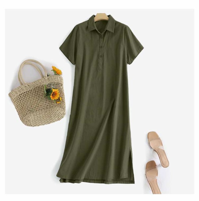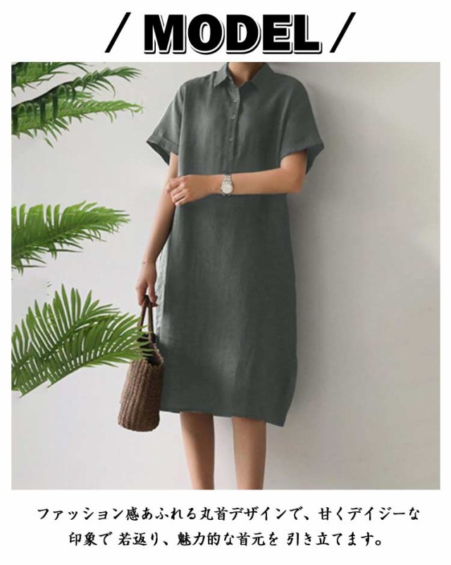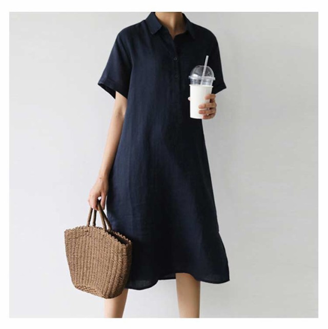 無地 シャツワンピース 半袖ワンピース ワンピース シャツワンピース 夏ワンピース 秋ワンピース きれいめ ワンピース 大人ワンピース 春ワンピース 大きいサイズ ロングワンピース レディース Aライン通勤 入園式