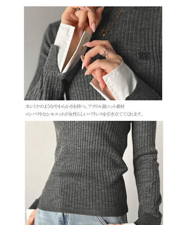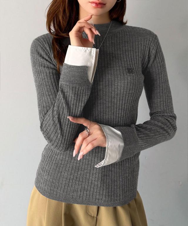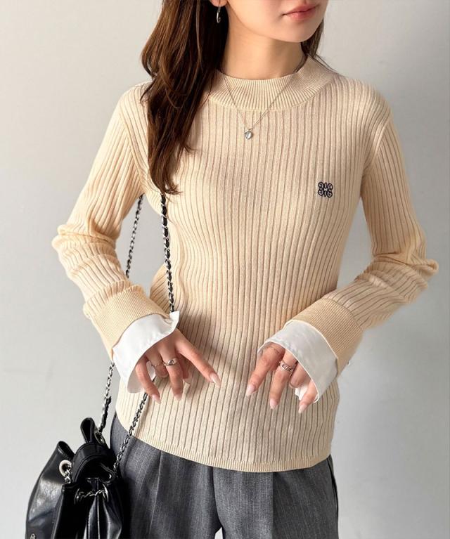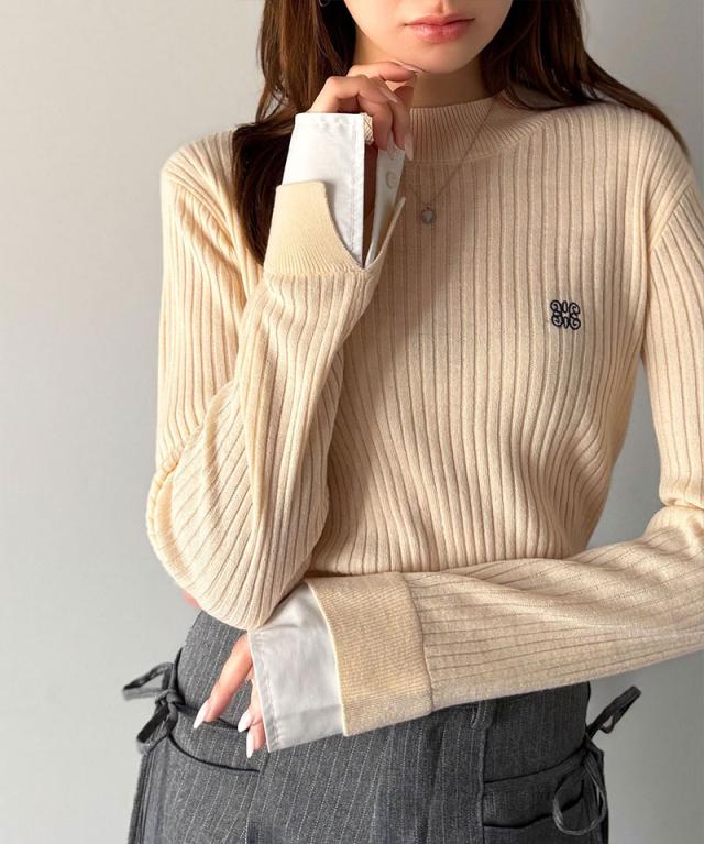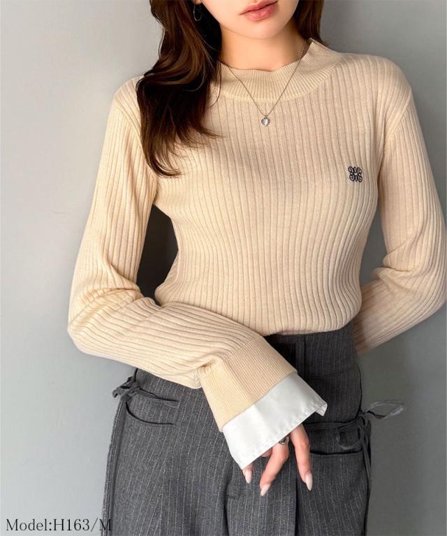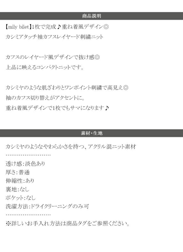 クラシカルエルフ秋新作 mily bilet トップス ニット レディース 重ね着風 デザイン カシミア タッチ 袖 カフス レイヤード 刺繍 長袖 大きいサイズ 2025aw mi1259018