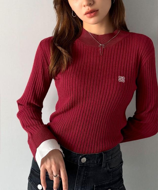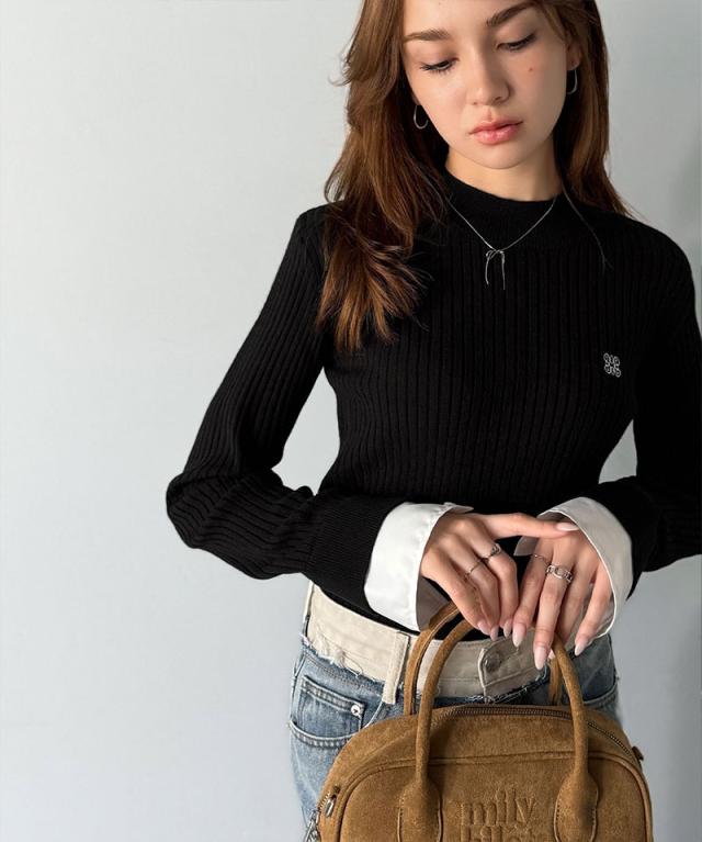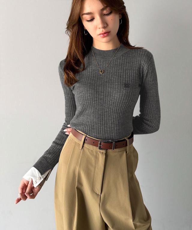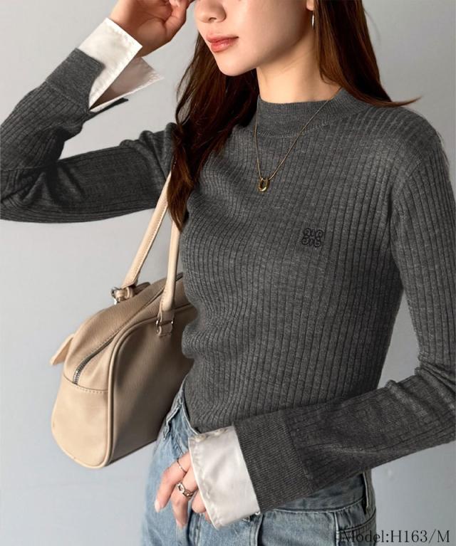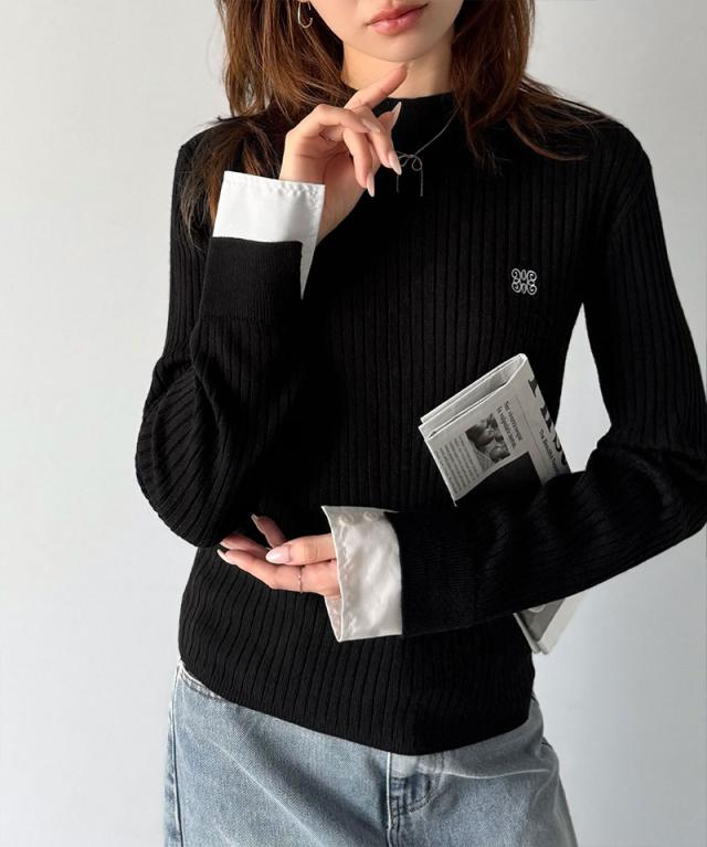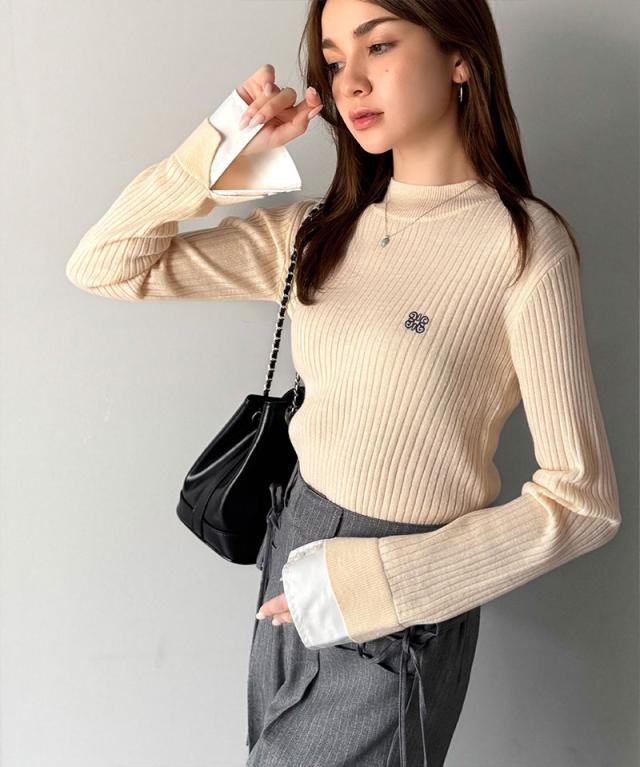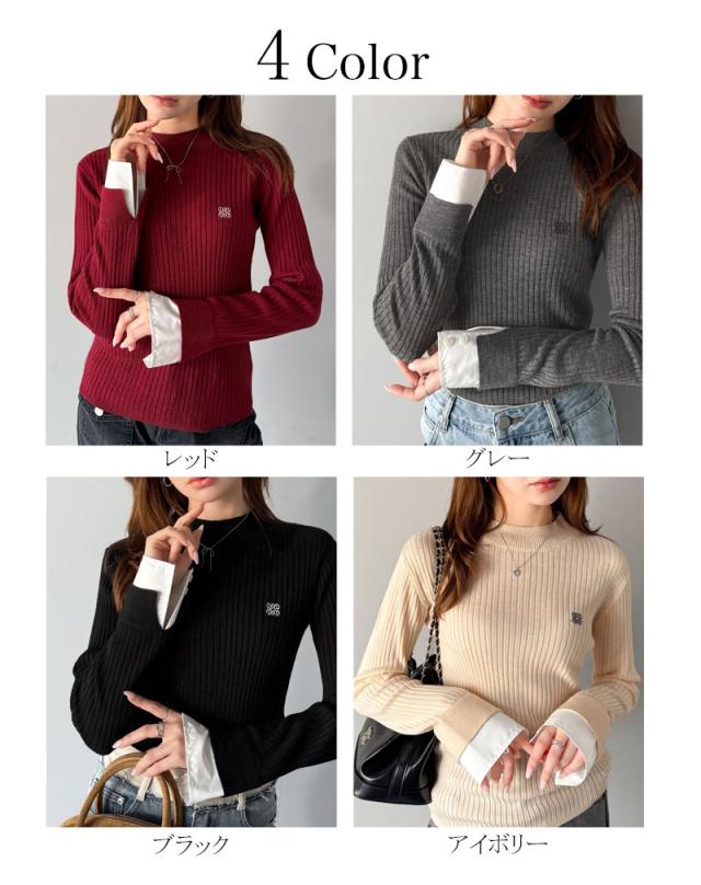 クラシカルエルフ秋新作 mily bilet トップス ニット レディース 重ね着風 デザイン カシミア タッチ 袖 カフス レイヤード 刺繍 長袖 大きいサイズ 2025aw mi1259018
