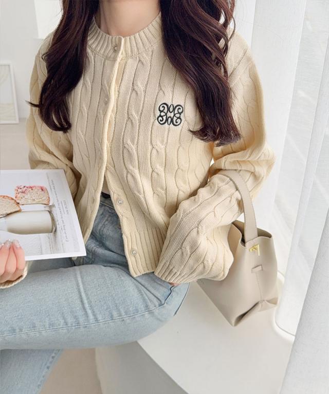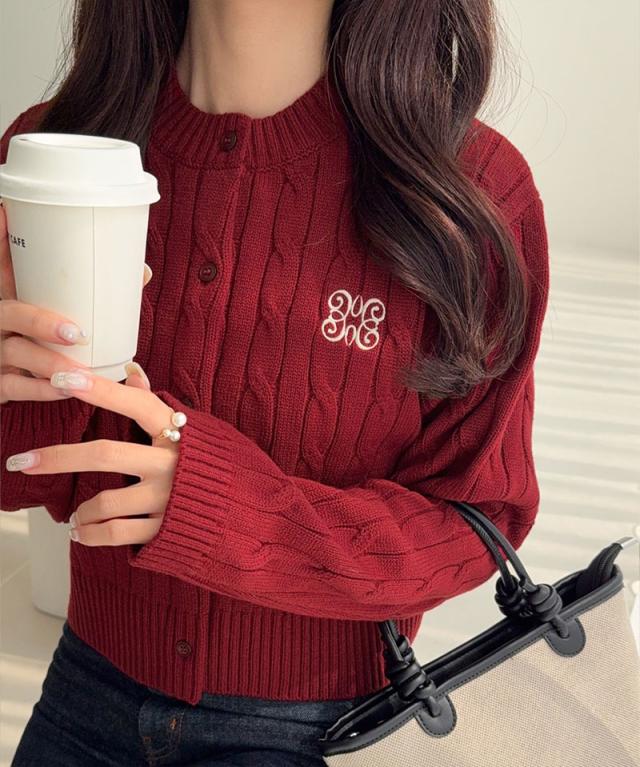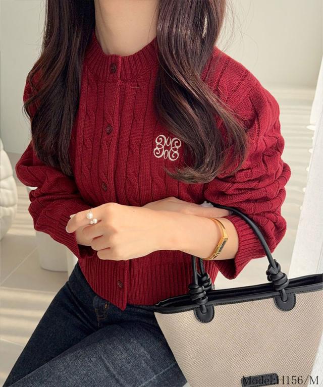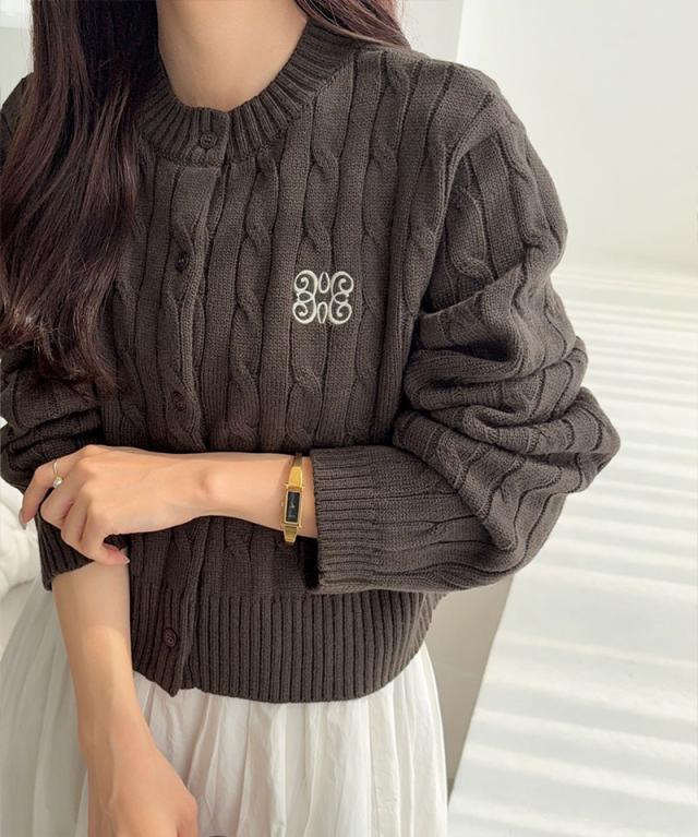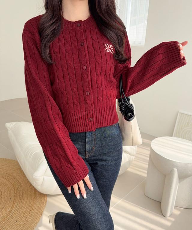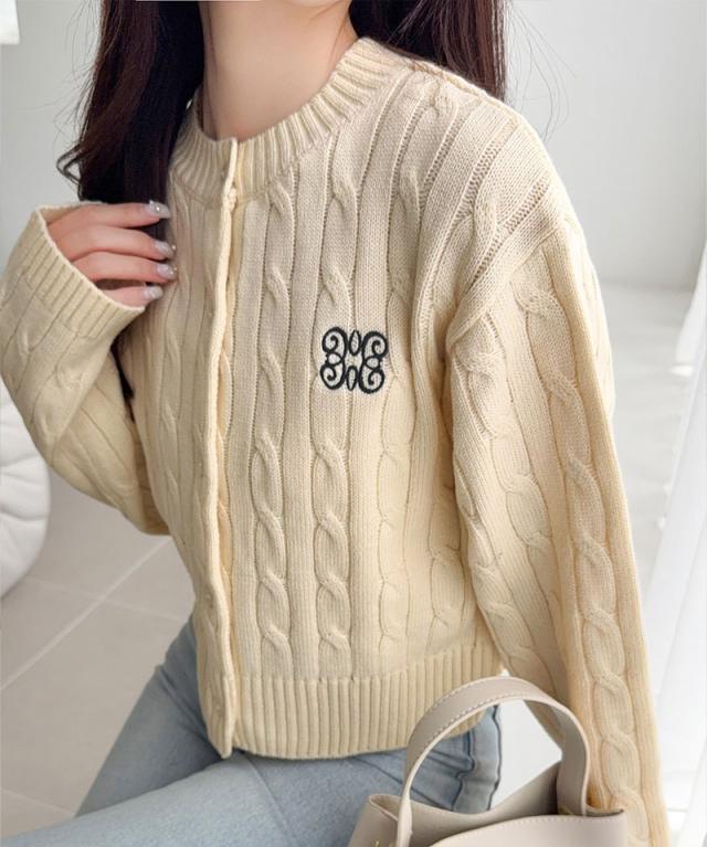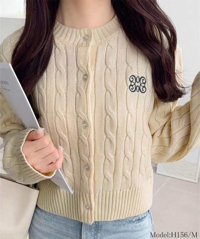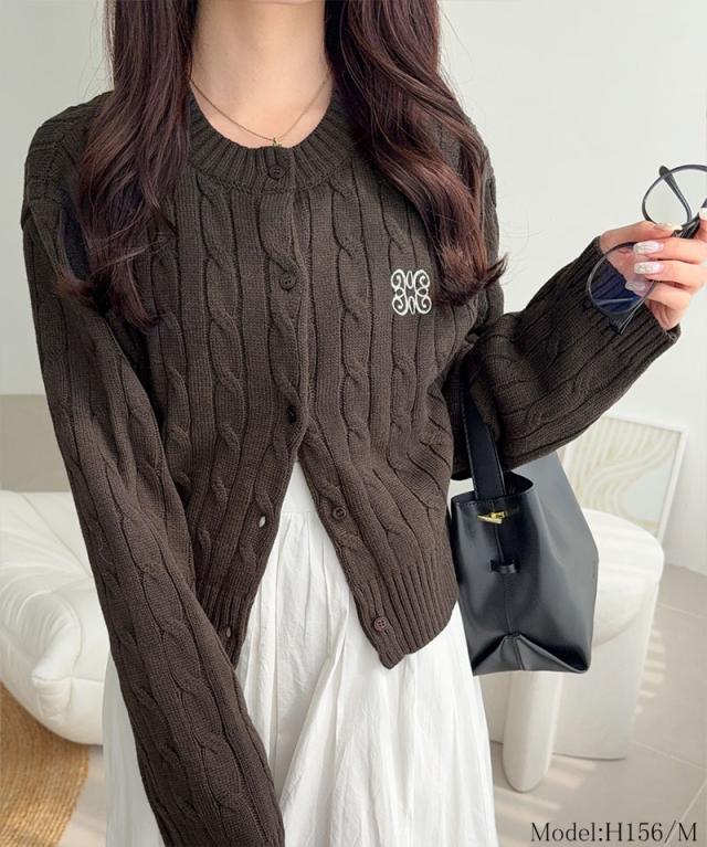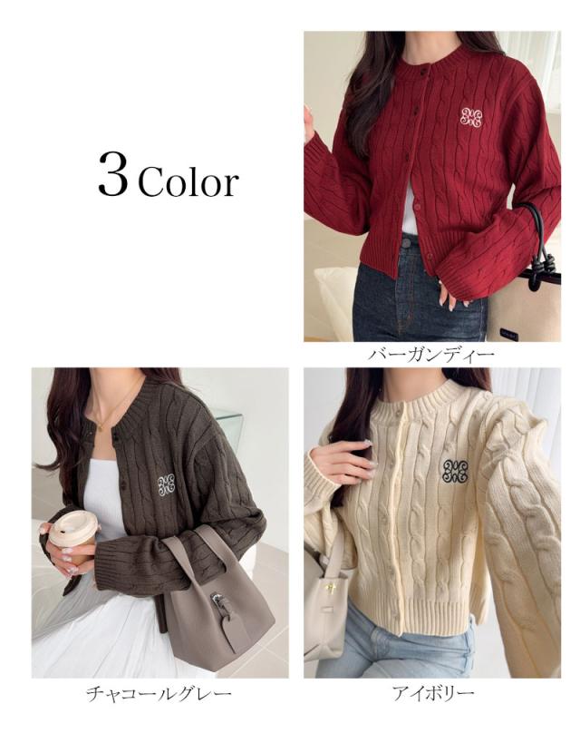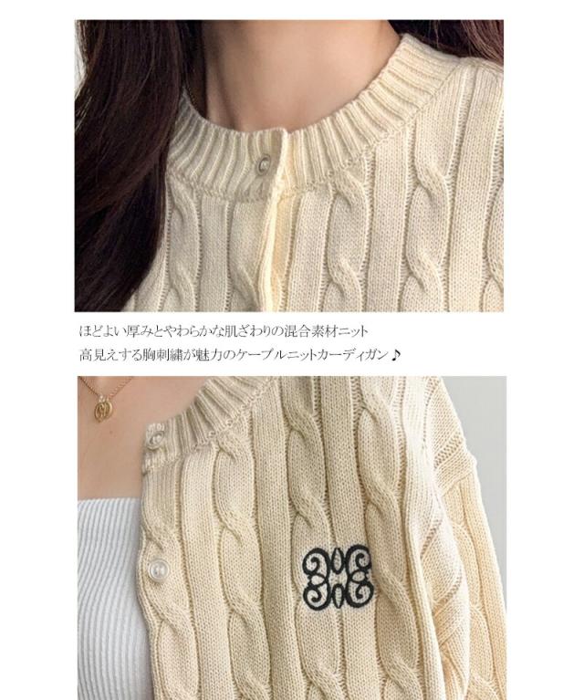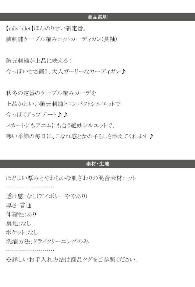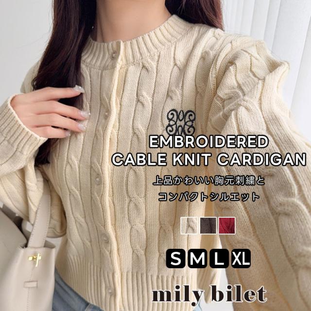 クラシカルエルフ秋新作 mily bilet トップス レディース カーディガン 胸 刺繍 ケーブル 編み ニットカーデ 上品見え 大人 ガーリー 長袖 コンパクト丈 大きいサイズ 2025aw mi1259023