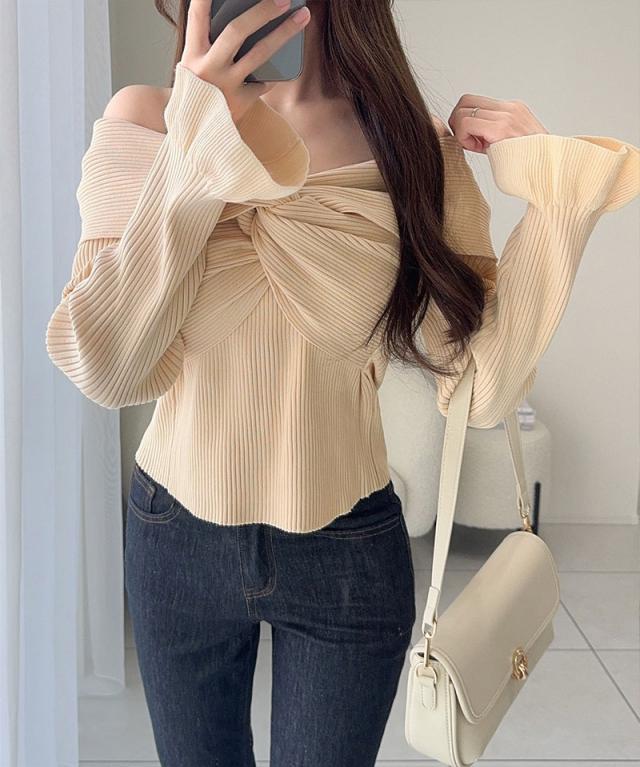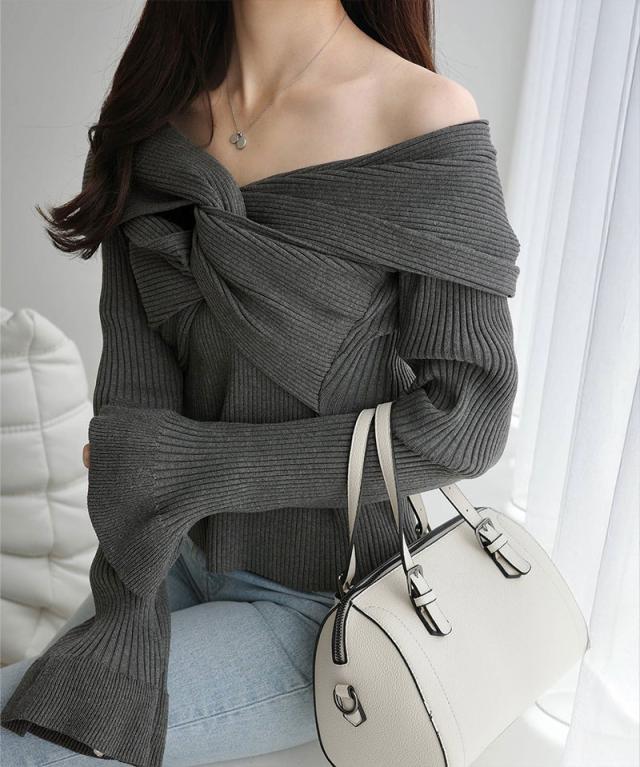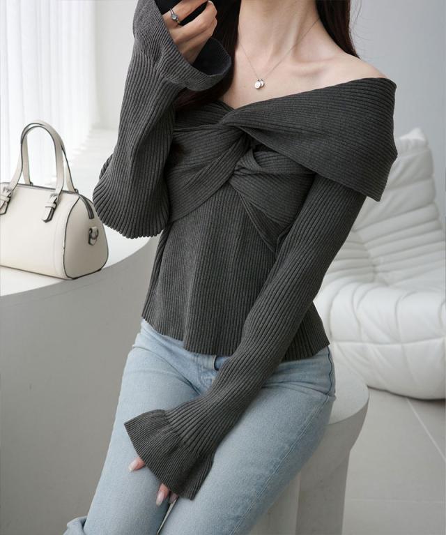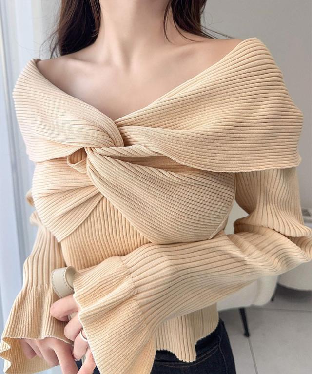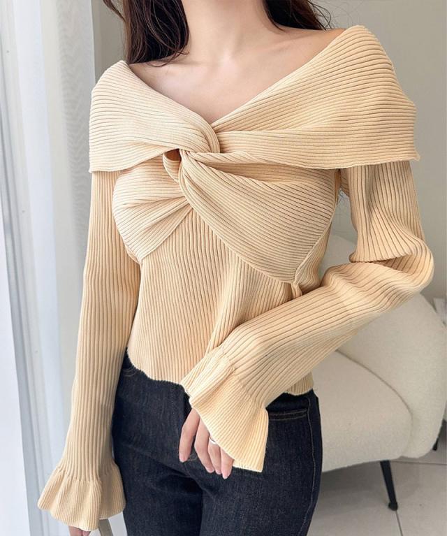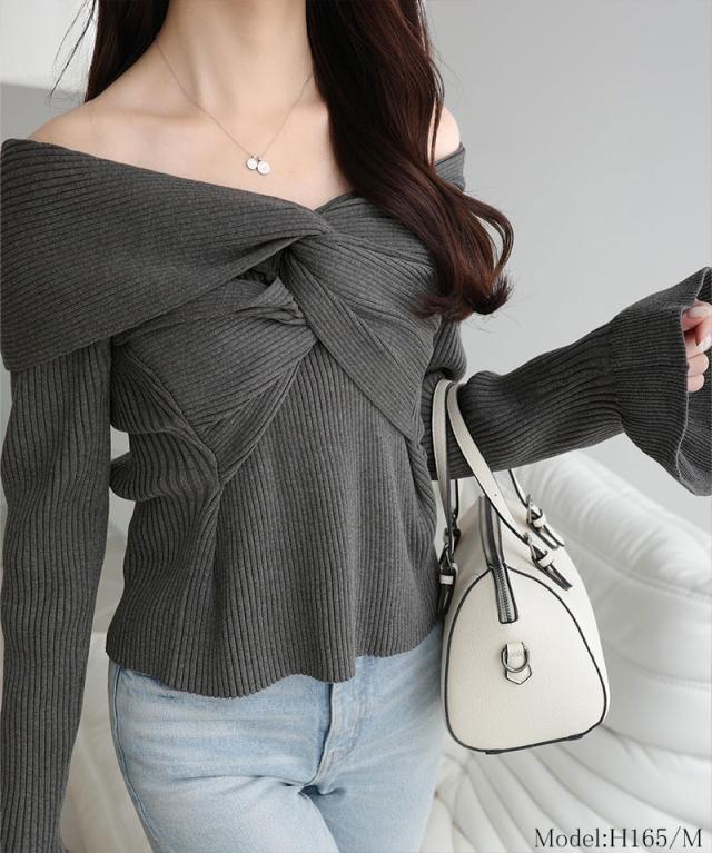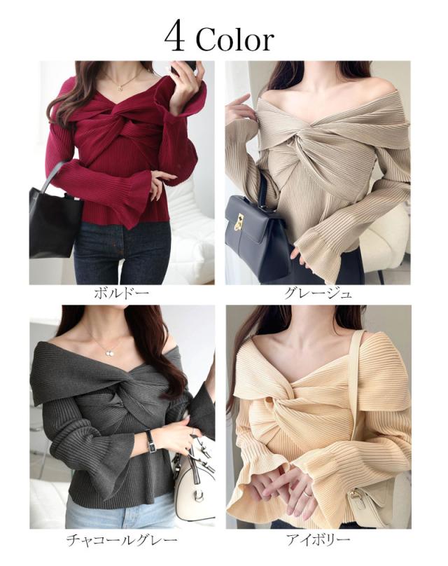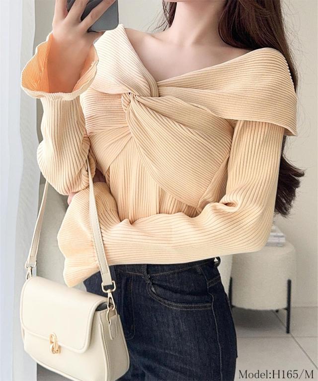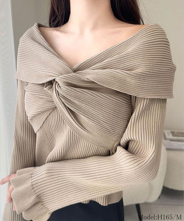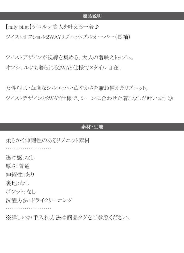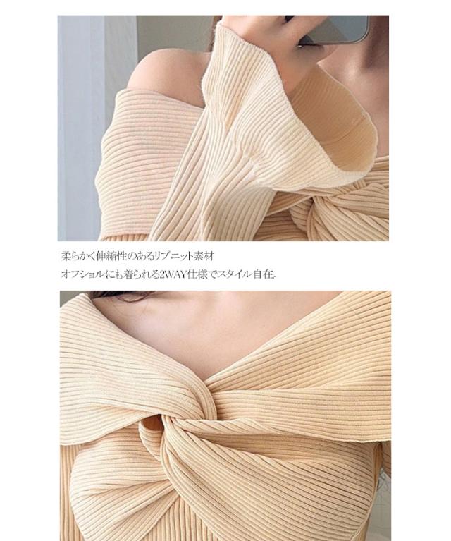 クラシカルエルフ秋新作 mily bilet トップス ニット レディース ツイスト オフショルダー2WAY リブニット プルオーバー 長袖 大きいサイズ 2025aw mi1269006