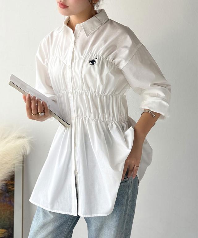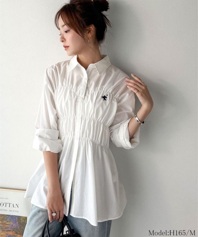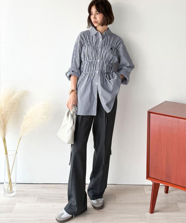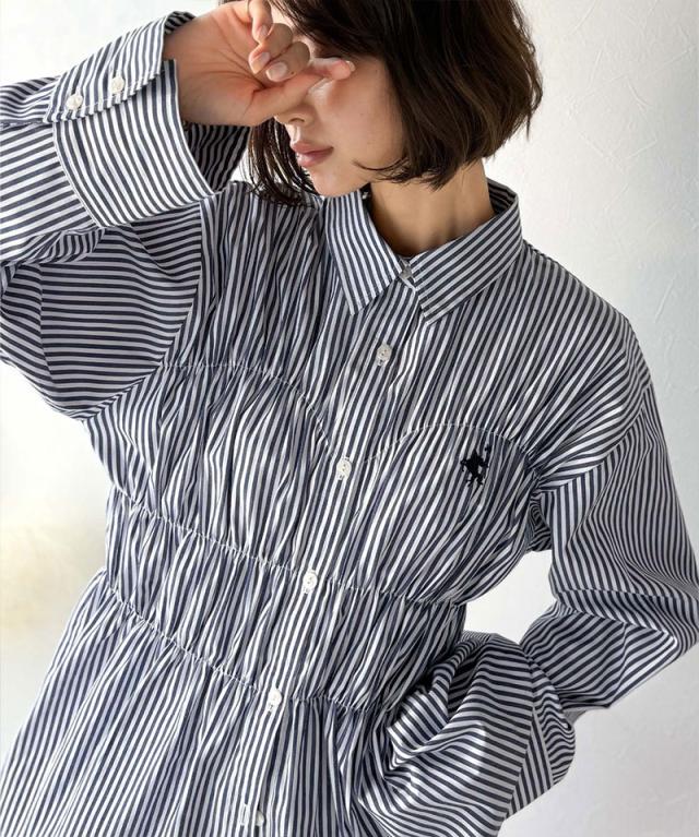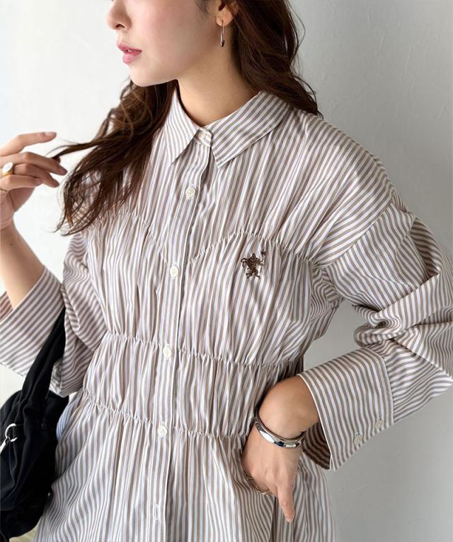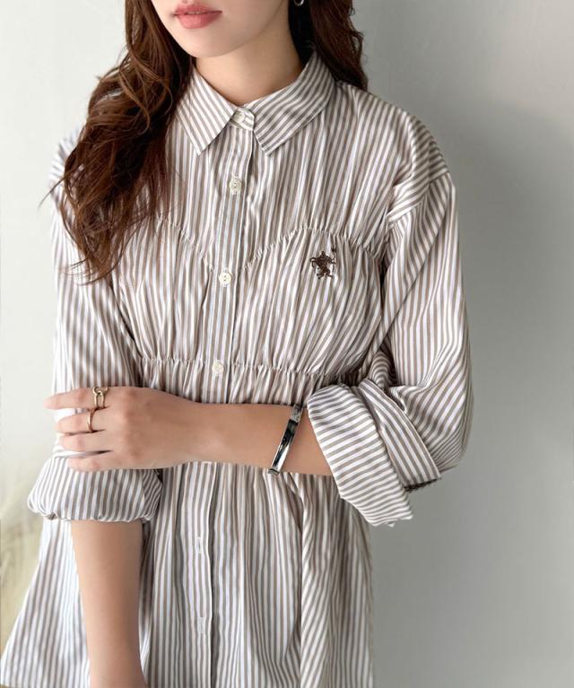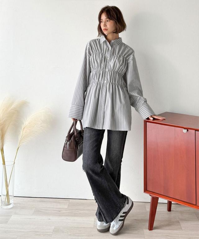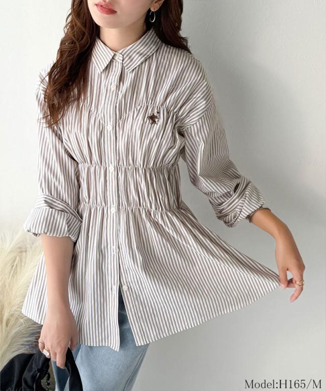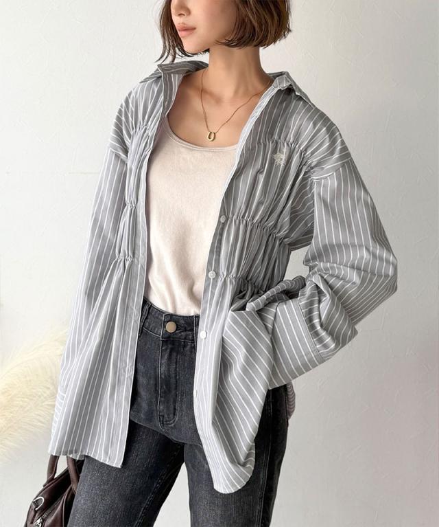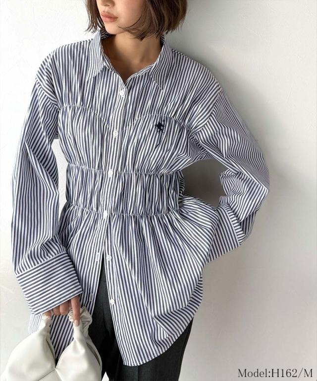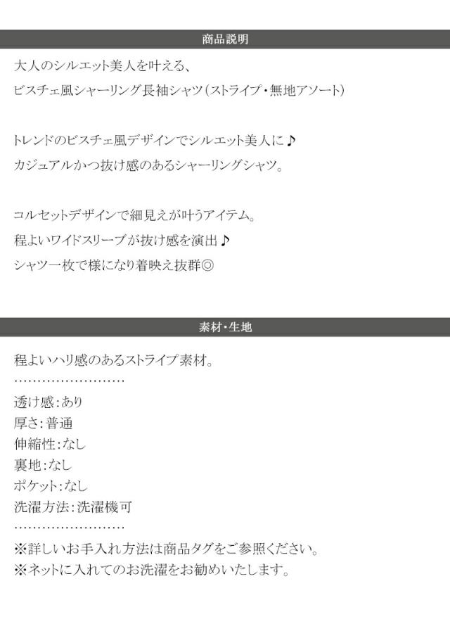 クラシカルエルフ秋新作 トップス シャツ レディース ビスチェ 風 シャーリング 長袖 ストライプ・無地アソート コルセット デザイン 羽織り レイヤードコーデ 大きいサイズ 2025aw ce1010477