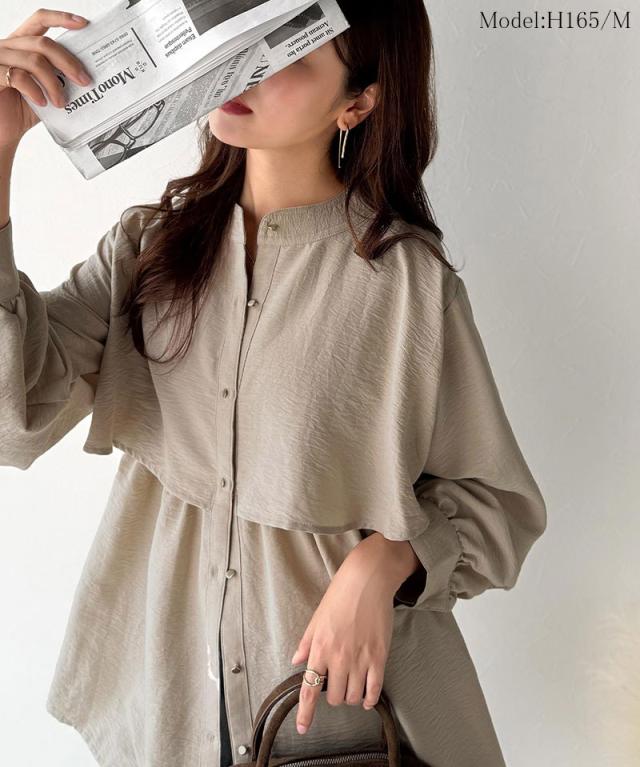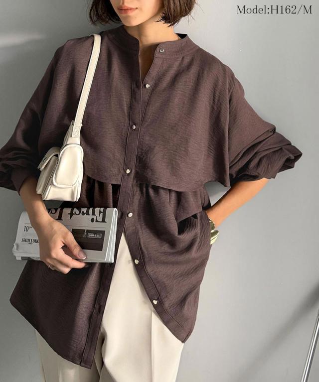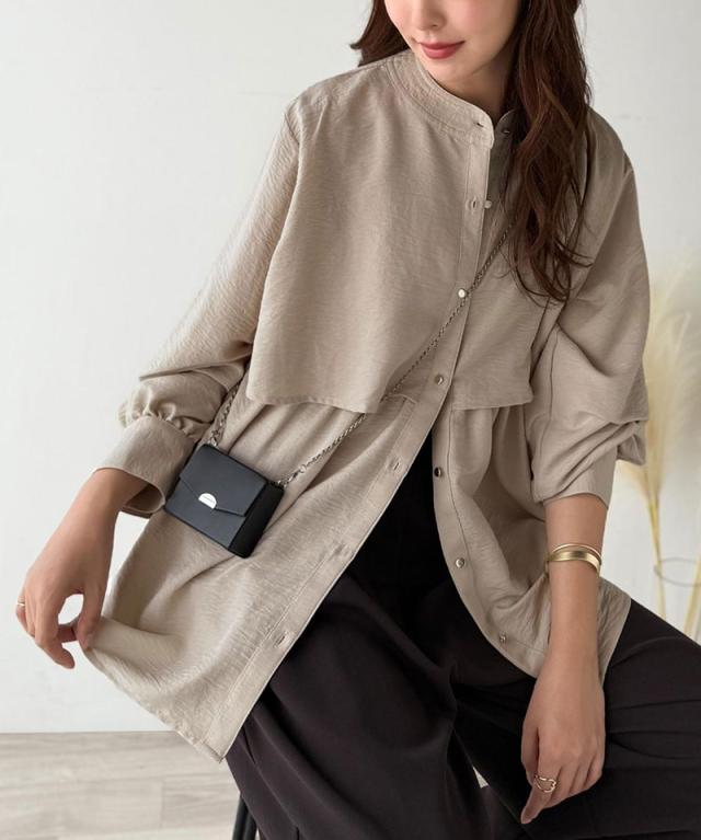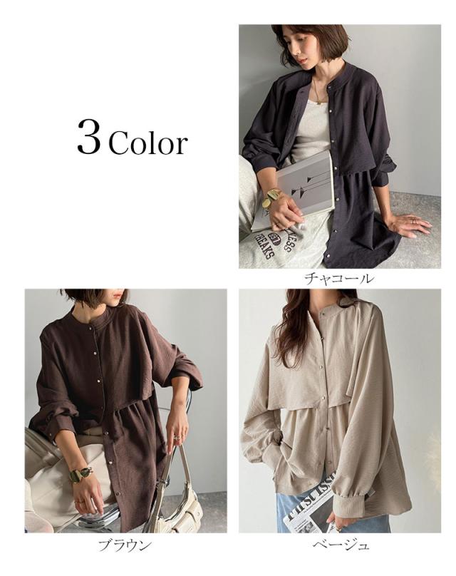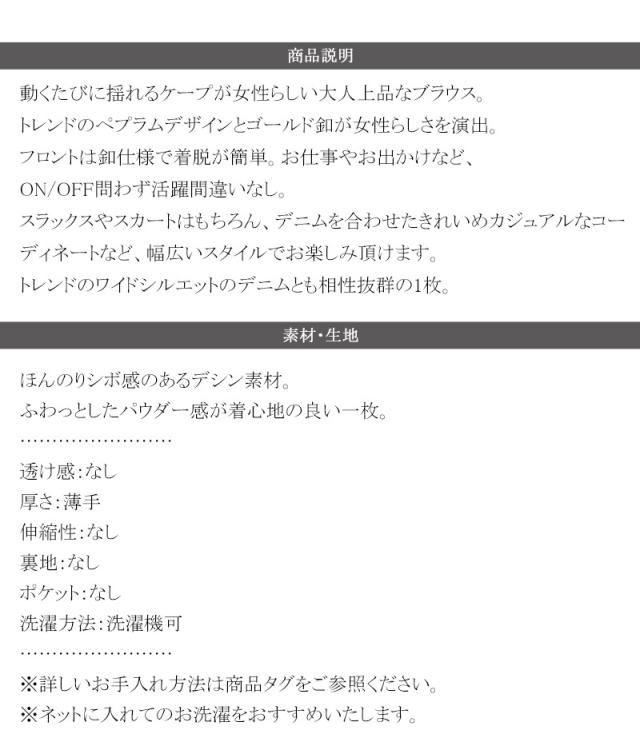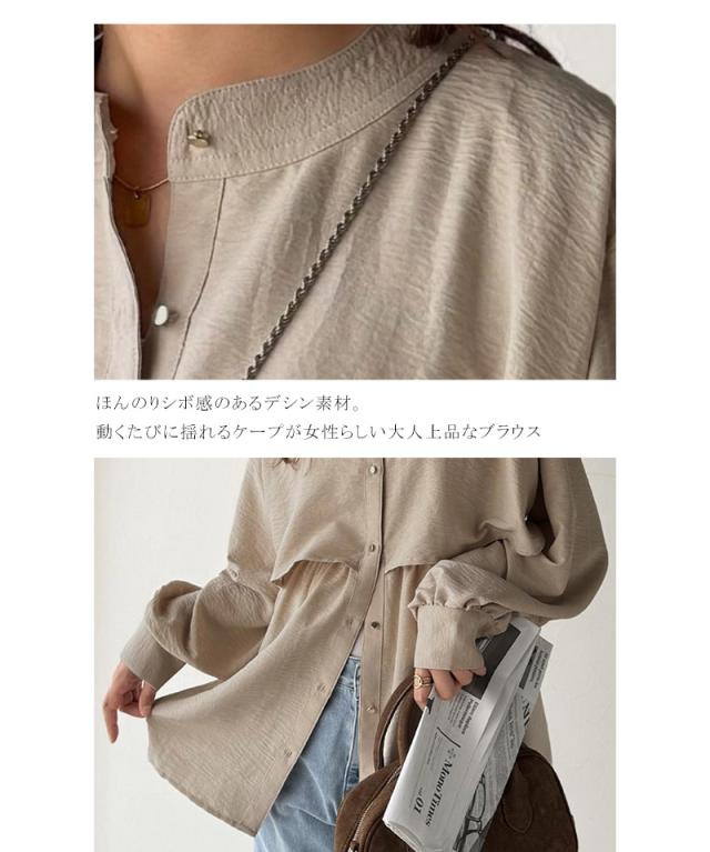 クラシカルエルフ秋新作 トップス シャツ レディース ブラウス ペプラムケープシャツ ペプラムシルエット 上品 通勤 デイリー シボ感 羽織り カジュアル きれいめ 大きいサイズ 2025aw ce1010496