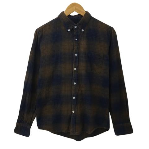 【中古】ビームスハート シャツ カジュアル ボタンダウン チェック 長袖 M 茶 紺 ブラウン ネイビー メンズ