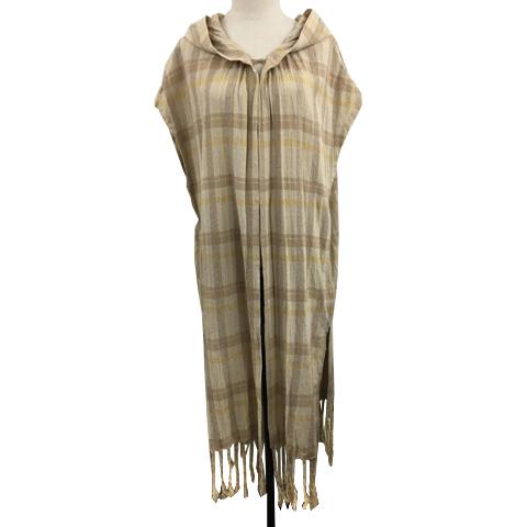 【中古】ノーメント normment ベスト ロング フード フリンジ チェック ベージュ 茶 ブラウン レディース