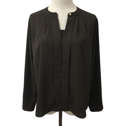 【中古】ビス ViS シャツ ブラウス バンドカラー タック 無地 長袖 F 茶 ブラウン レディース