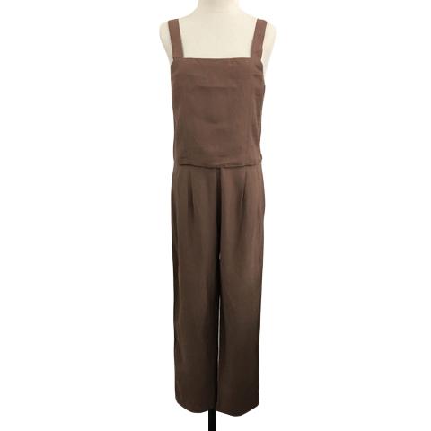 【中古】アンデミュウ セットアップ ビスチェ キャミソール ノースリーブ パンツ ストレート リネン混 無地 M 茶
