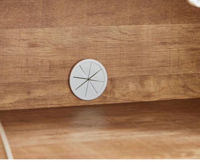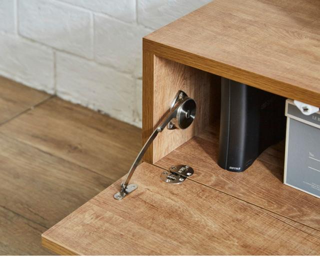 開き扉にはソフトクローズが取り付けられており、扉が静かに閉まります。スチール製の高さ15cmの黒脚付きで床のお掃除も簡単。天板の後方にはテレビの配線などを逃がすためのスリットがあるので壁にぴったりくっつけても配線を通すことが出来ます。背面にもコードが通せる穴がついているので、機械類の配線にも困りません。