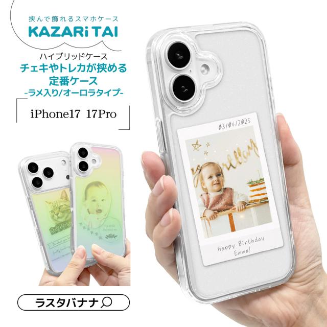 【送料無料】iPhone17 17 Pro ケース カバー ハイブリッド 耐衝撃吸収 TPUバンパーケース 写真が挟める 推し活 ワイヤレス充電対応 KAZARi TAI カザリタイ オーロラ ラメクリア アイフォン スマホケース ラスタバナナ 8951IP5AHPCL 8952IP5AHPCL 9045IP5BHPCL