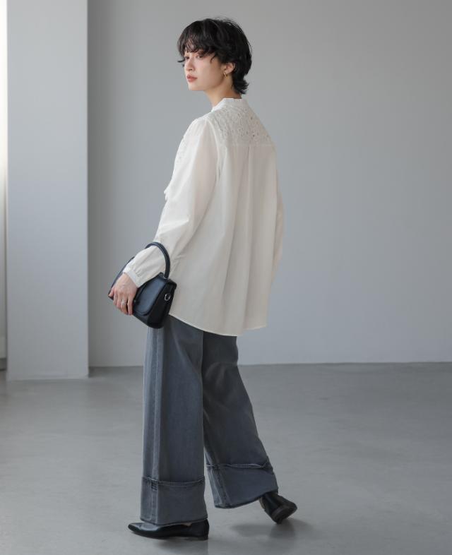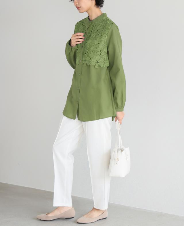 ■Attention ※ご覧になるモニターや環境により実際の商品と色味が異なる場合がございます。予めご了承ください。 ※実寸サイズは平置きメジャー採寸のため若干の誤差が生じる場合がございます。 ※お取り扱い・お洗濯につきましては、付属の商品タグをご使用前に必ずご確認下さい。 ※濃色の商品は色落ち・移染する可能性がございますので、お取り扱いにはご注意下さい。 ※繊維製品のため、同じ商品であっても生産時期やカラーによって伸縮率・生地感・色味が多少異なる場合がございます。特にニット製品に関してはプレス・洗い加工等で5cm前後の誤差が生じる場合がございます。 これらは品質上問題はございません。予めご了承下さい。 ■Staff comment AI/身長:154cm(普段のサイズ:M-L) 体型:骨格ストレート 全体的に厚みのある、産後体型。 トップスはMサイズを選ぶ。 ウエストと腰回りが大きく、ボトムはLサイズを選ぶこともあります。 【着丈】ヒップ下12cm。 【袖丈】伸ばすと手が2/3隠れる長さで、袖口は手の甲で止まる。 【一言コメント】 胸元のレースで、華やかに見えます。 AYA/身長:158cm(普段のサイズ:M) 体型:骨格ウェーブ 上半身筋肉質の標準体型。肩幅は広くバストは平均。 ウエストは細くヒップが大きいので、 ヒップに合わせてボトムは選びます。 【着丈】ヒップ下10cm。 【袖丈】伸ばすと親指の付け根で、袖口は手の甲で止まる。 【一言コメント】 ネックにゆとりがあるので、ボタンを1番上まで閉めても苦しくないです。 RISA/身長:166cm(普段のサイズ:L-LL) 体型:骨格ナチュラル 体に厚みがあるやや痩せ型。 バスト・ウエスト・ヒップは標準ですが、 肩幅が広くて腕が長め、ふくらはぎは筋肉質。 身長が高いため普段Lサイズを選びます。 【着丈】ヒップ下2cm。 【袖丈】手首ぴったり。 【一言コメント】 ブラウスは前と閉じると堅苦しくなりがちですが、これはレースがあるのでオシャレに着れそうです。 |