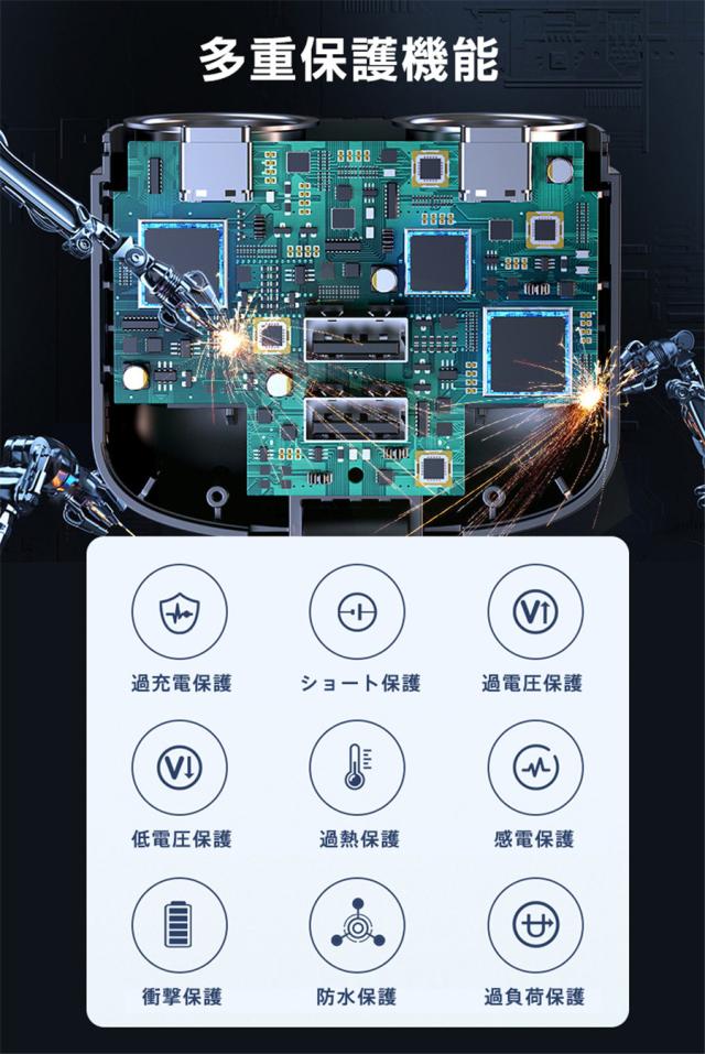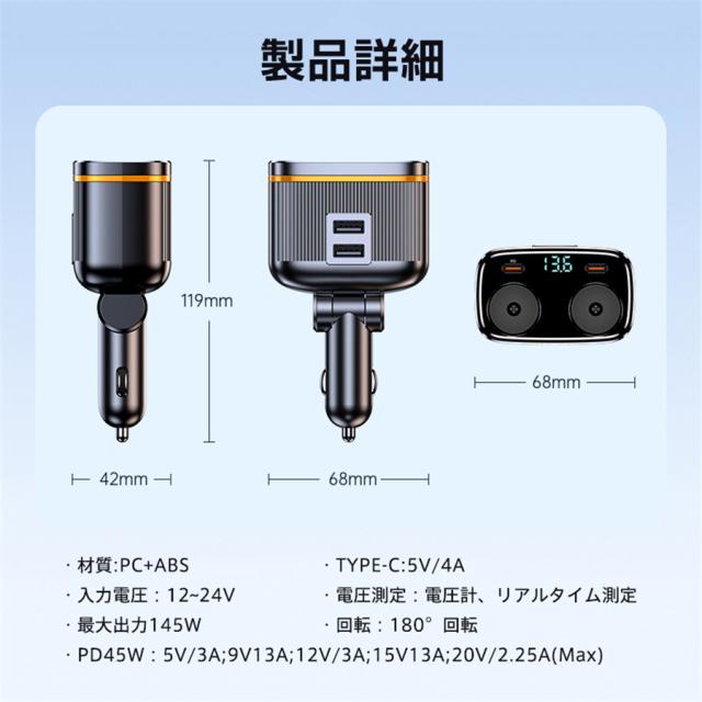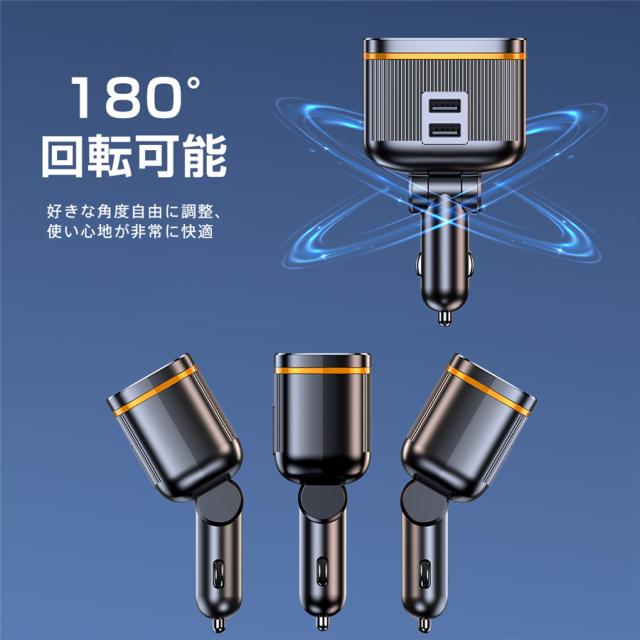 シガーチャージャー シガーソケット 車 充電器 145W カーチャージャー 6ポート 6in1 PD対応 6台同時充電 usbボート 延長コード 3連 4連 usb コンセント 巻き取り式 iPhone/Android タブレット充電 99%車種対応 角度 自由調節 車用品 カー用品 車中泊グッズ トラック 防災グッズ USB電源増設 電流表示 快速 高速