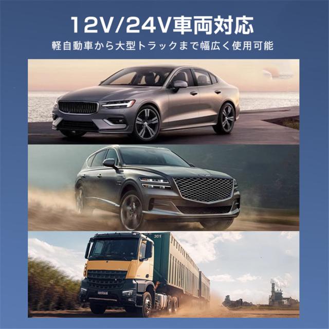 ・急速充電・12V/24V車両対応、軽自動車から大型トラックまで幅広く使用可能。
