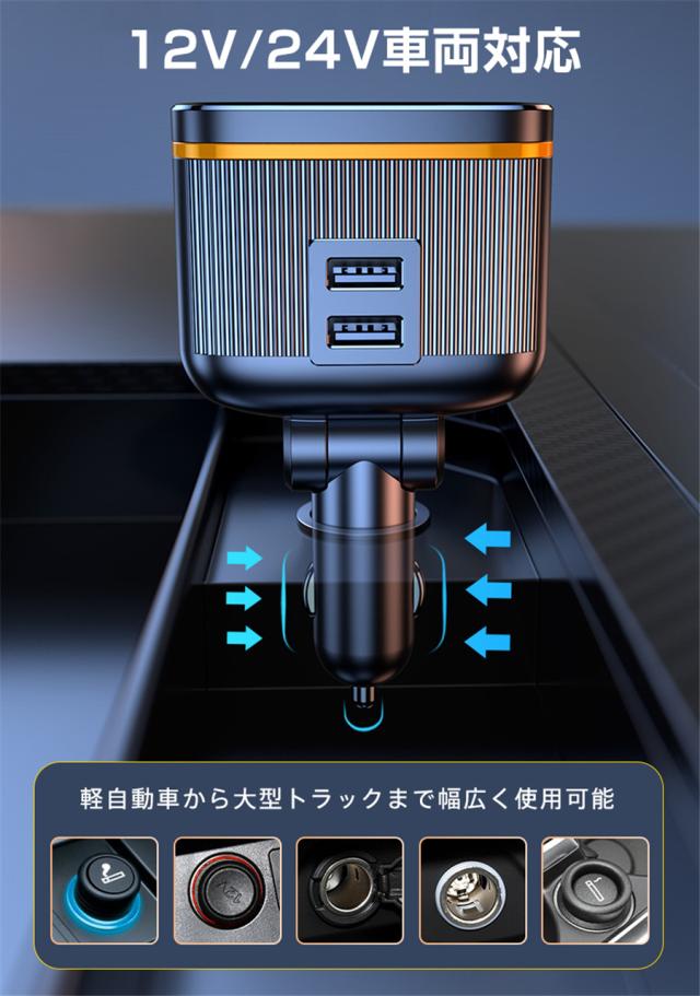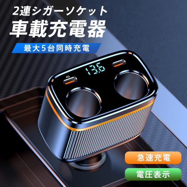 シガーソケット カーチャージャー USB 増設 2連 4連 車載充電器 12V/24V スマホ 急速充電 電圧計付き