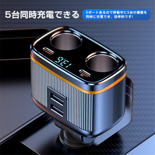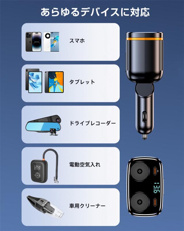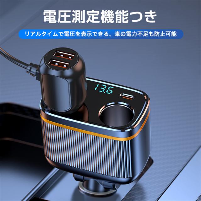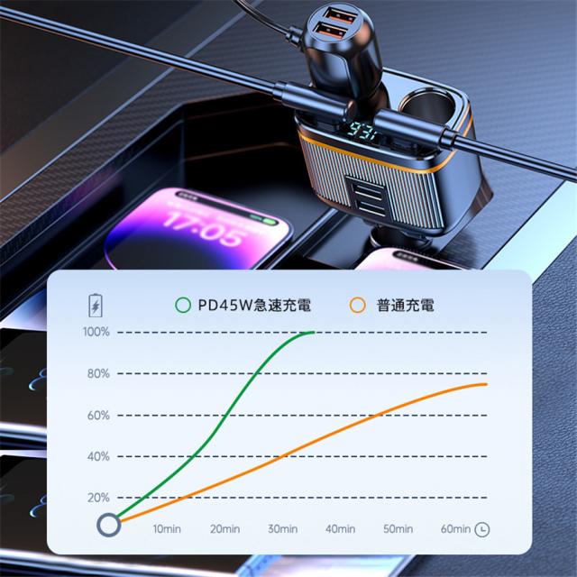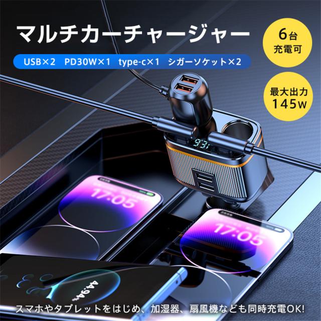 シガーチャージャー シガーソケット 車 充電器 145W カーチャージャー 6ポート 6in1 PD対応 6台同時充電 usbボート 延長コード 3連 4連 usb コンセント 巻き取り式 iPhone/Android タブレット充電 99%車種対応 角度 自由調節 車用品 カー用品 車中泊グッズ トラック 防災グッズ USB電源増設 電流表示 快速 高速