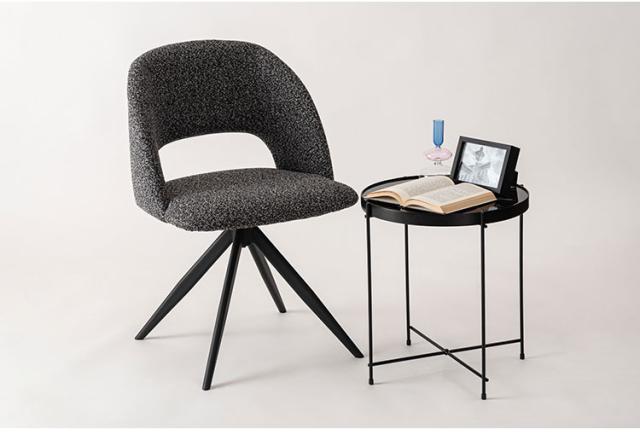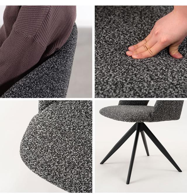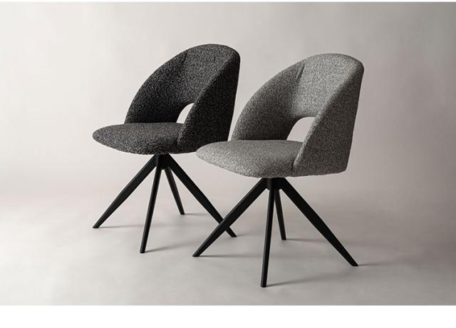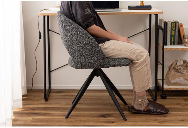 デザインと利便性を兼ね揃えた回転チェア 曲線を活かしたボリューム感ある本体と、放射状に伸びた軽快な印象を感じさせる脚部が融合した回転チェア。腰部に抜きを作ることにより重量感を軽減しました。座面が回転するので、座ったまま身体の向きを変えることができ、テーブルへの出入りもしやすくなります。
