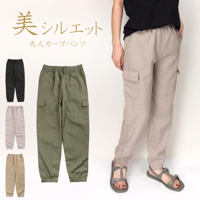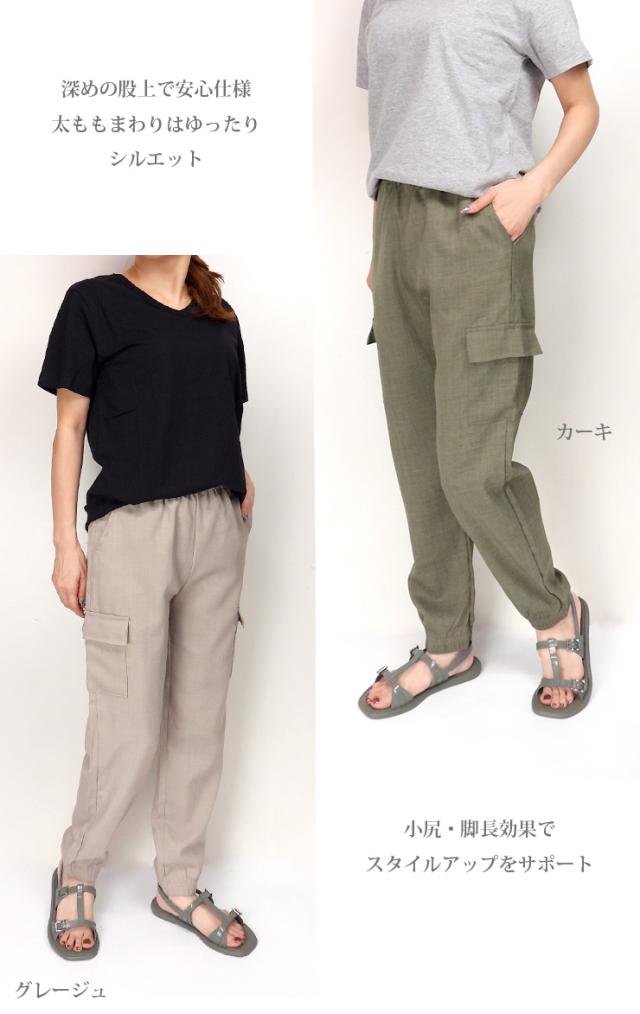 【メール便送料無料】カーゴパンツ ジョガーパンツ レディース M L LL YSK-24902 パンツ 10分丈 長ズボン ボトムス 裾ゴム 無地 ブラック グレージュ カーキ ベージュ 黒 グリーン 緑 薄地 薄手 春夏秋 3004