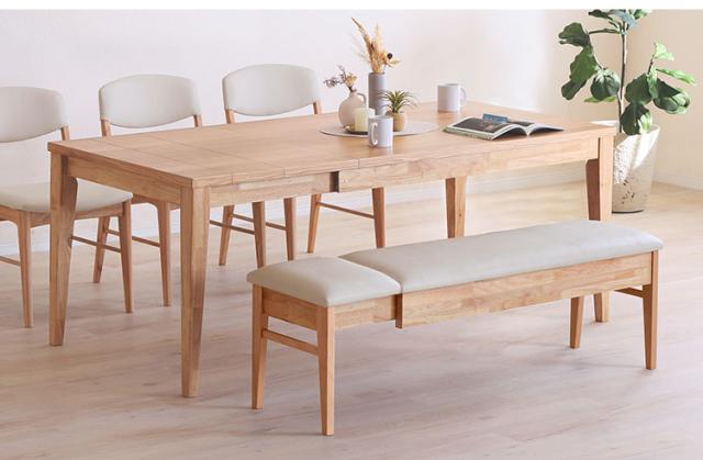 チェア/幅46cm | 伸長式ベンチ/幅115-140cm | 伸長式テーブル/幅130-180cm | 伸長式テーブル+伸長式ベンチ+チェア2脚 |