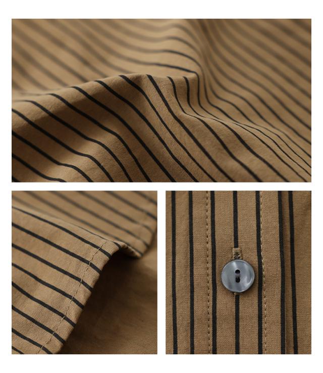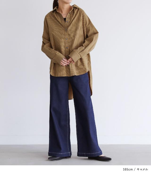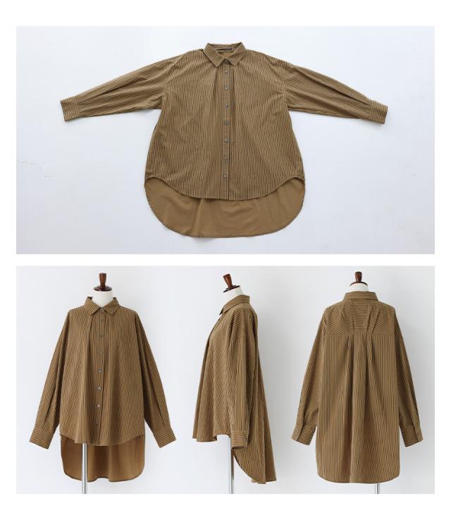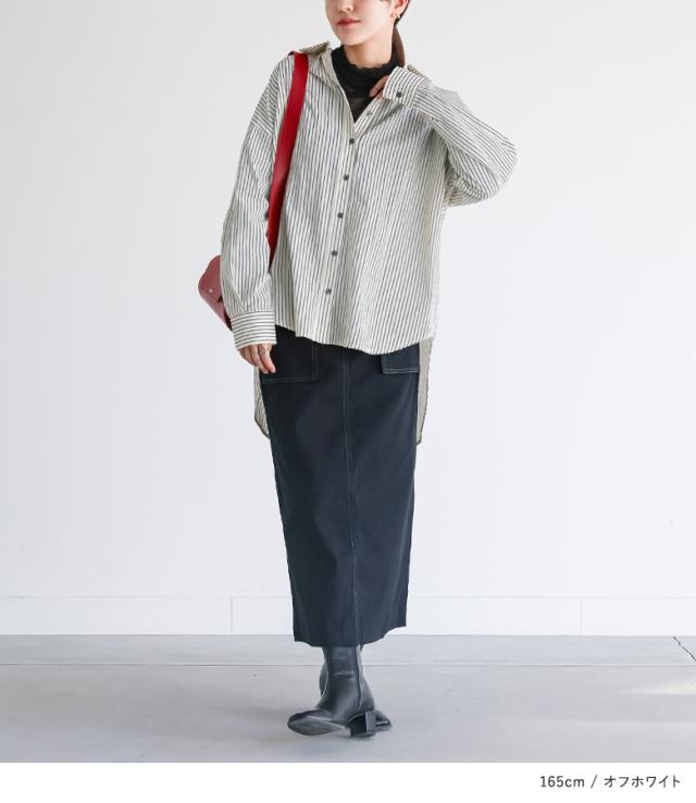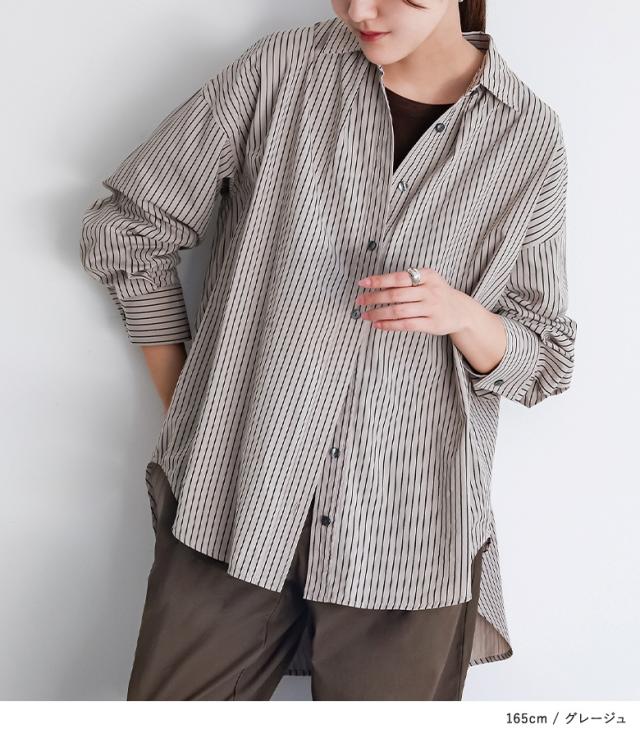 ■デザイン お尻がすっぽり隠れる長めの着丈が特徴的なストライプシャツ。シンプルながらも、後身頃のタックの切り替えでさりげなくポイントをプラス。1枚着ではもちろん、羽織としても万能に使えるアイテムです。 ■コーディネート パンツ・スカートどちらにも合わせやすく、カジュアルからキレイめスタイルまで幅広くコーディネートしていただけます。羽織りとしてコーデにプラスワンしたり、サロペットなどのインナーとして着用したりと着回しにも活躍します。 ■素材 さらりとしたコットン素材を使用。程よい厚みで、季節の変わり目に最適な一枚です。 |