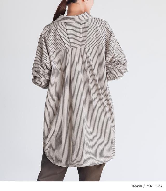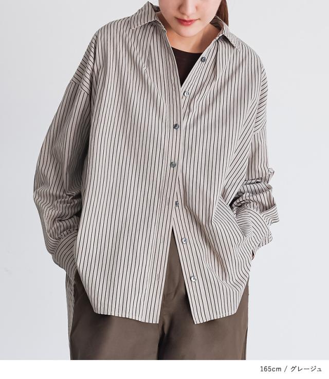 <冬新作>『ストライプデザインシャツ』※メール便可※【10】[長袖シャツ レディース トップス 綿100% コットン100% 長袖 襟付きシャツ ロングシャツ 羽織り ストライプ 秋 冬 オシャレウォーカー]